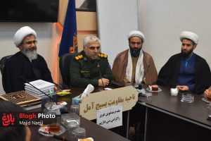 حجتالاسلام والمسلمین یعقوبیان، امام جمعه آمل، به همراه هیئت همراه، با سرهنگ سید موسی حسیننژاد، فرمانده سپاه آمل دیدار کرد.